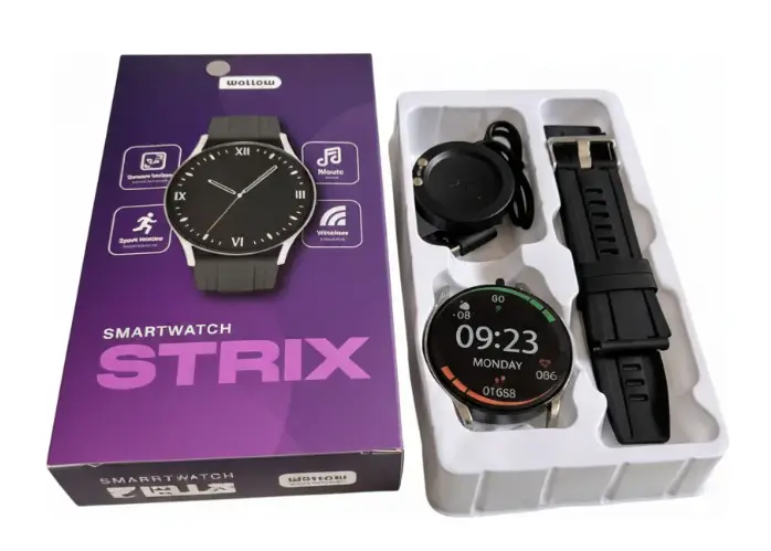Funcionalidad y resistencia en un diseño compacto. El Wolow Strix es un reloj táctico con pantalla de 1.3" y malla de silicona de alta durabilidad, diseñado para ofrecer un monitoreo eficaz y notificaciones inteligentes en tu día a día